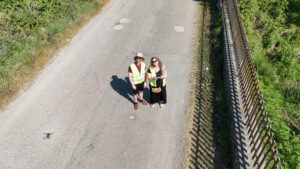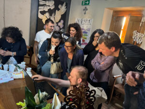 We were pleasantly surprised when the museum workers interrupted our work with local pastries as it turned out to be Sara’s birthday. Meeting the volunteers has been a great experience and it is clear they are very passionate about the work they do. After the cake Kasper showed the volunteers some of the 3D models we already had finished, and continued outside to get a group photo with the volunteers in front of the Ferramonti Memorial sign, and took the opportunity to take the photo with the drone.