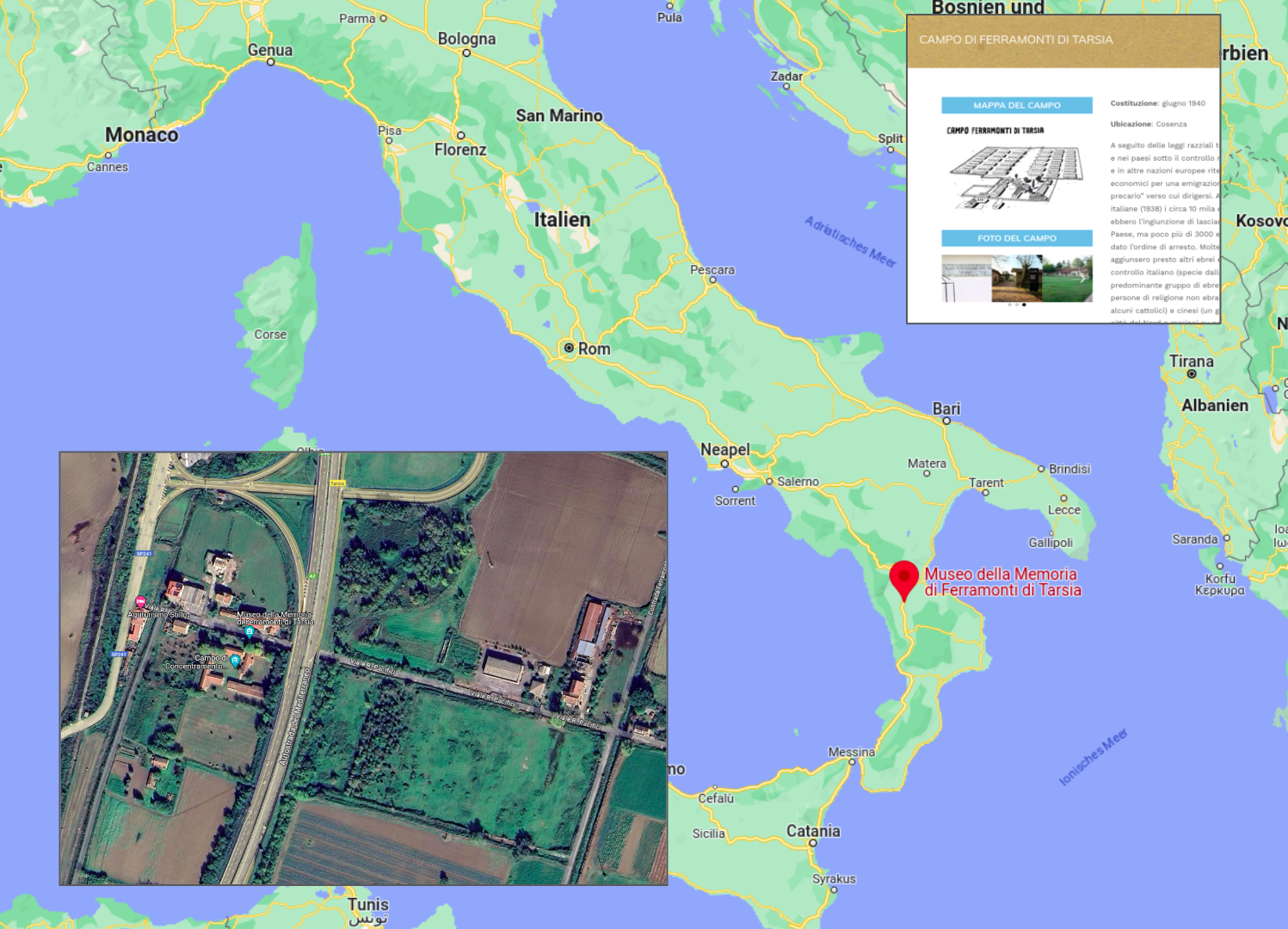Simona showed me the exhibition and told me a number of stories about the former camp and its inmates. In the 1960s, a motorway was build across the former campsite, separating the former guard area from the internment camp. Today, the memorial is spread across the preserved administration buildings in the former guard area, the former internment camp area is farming land with only a few wall remains. Ferramonti does not have digital interfaces visitors can interact with, but the tour with Simona showed me quickly that MEMORISE has the capability to create a sophisticated digital solution that would bring together all the knowledge about the memorial. What if we reconstruct the entire former campspace digitally in 3D to enable telling the stories about inmates that are currently told in “the wrong” guard area? Can such a tool help educators to convey Ferramonti’s history more appropriately? By enhancing the existing exhibition with a 3D digital version, will visitors get a better understanding of the theme?